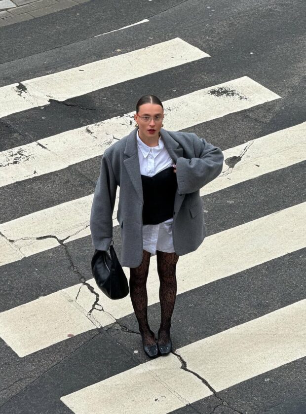 No verão, aposte na camisa branca de mangas curtas para um visual mais fresco. Combine com minissaia balonê, que adiciona volume e estilo, e finalize com gravata e mocassim.