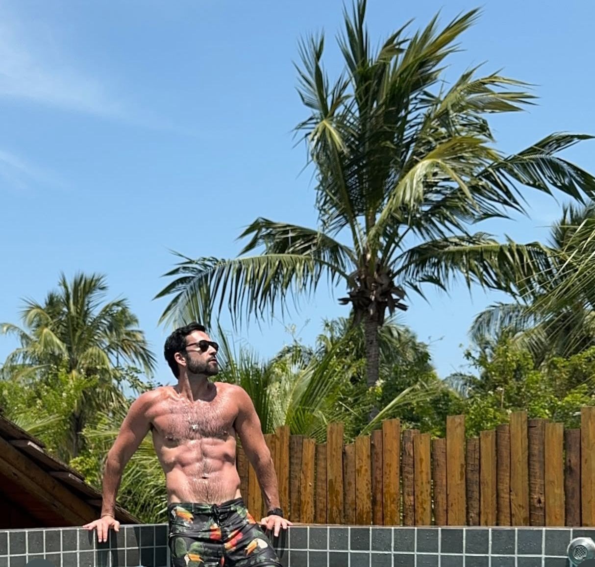 Ator compartilhou o momento nas redes sociais Sergio Marone usou o feed de seu perfil do Instagram neste sábado (15.03) para compartilhar o momento em que renovava o bronze e as energias na piscina.